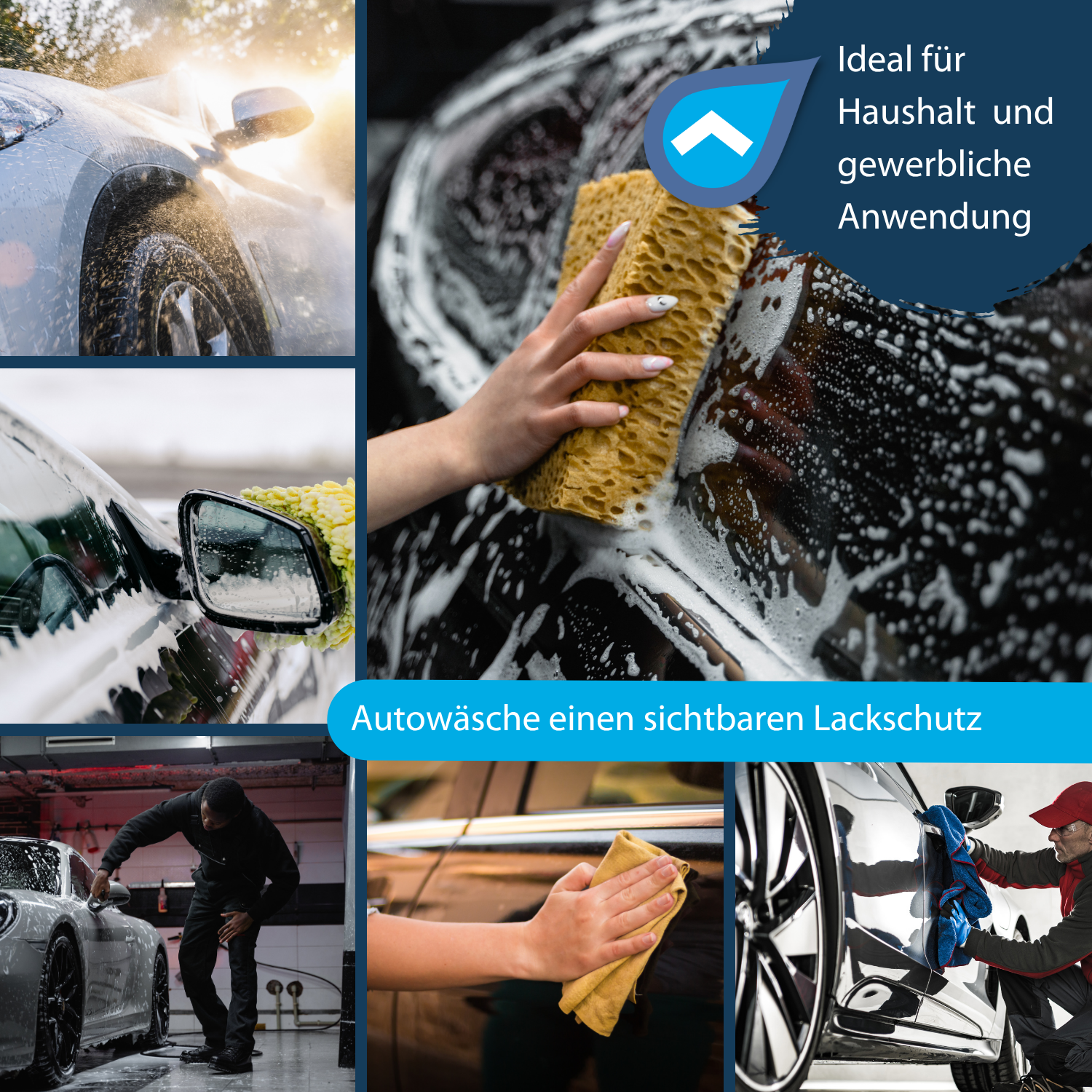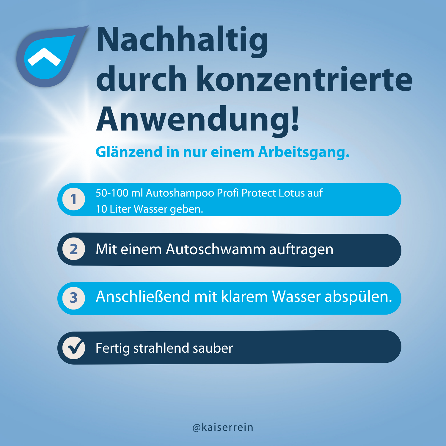 Mit einem Autoschwamm auftragen und anschließend mit klarem Wasser abspülen.