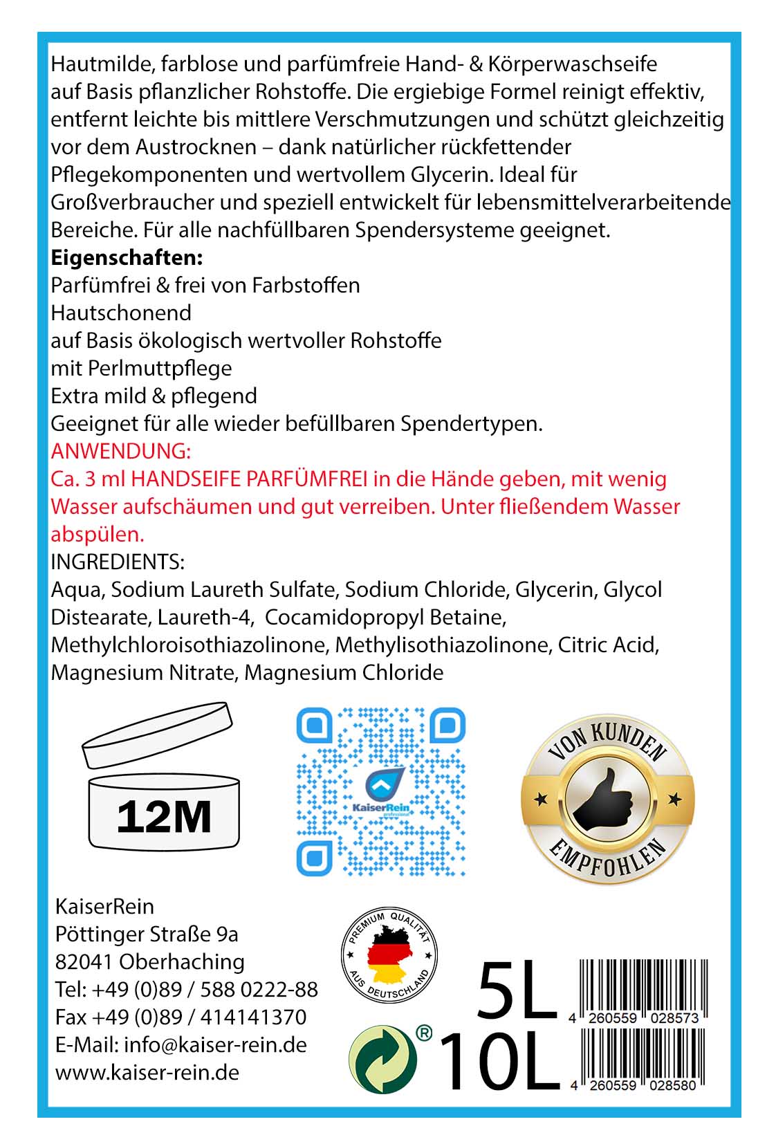 Pflegekomponenten und wertvollem Glycerin. Ideal für
