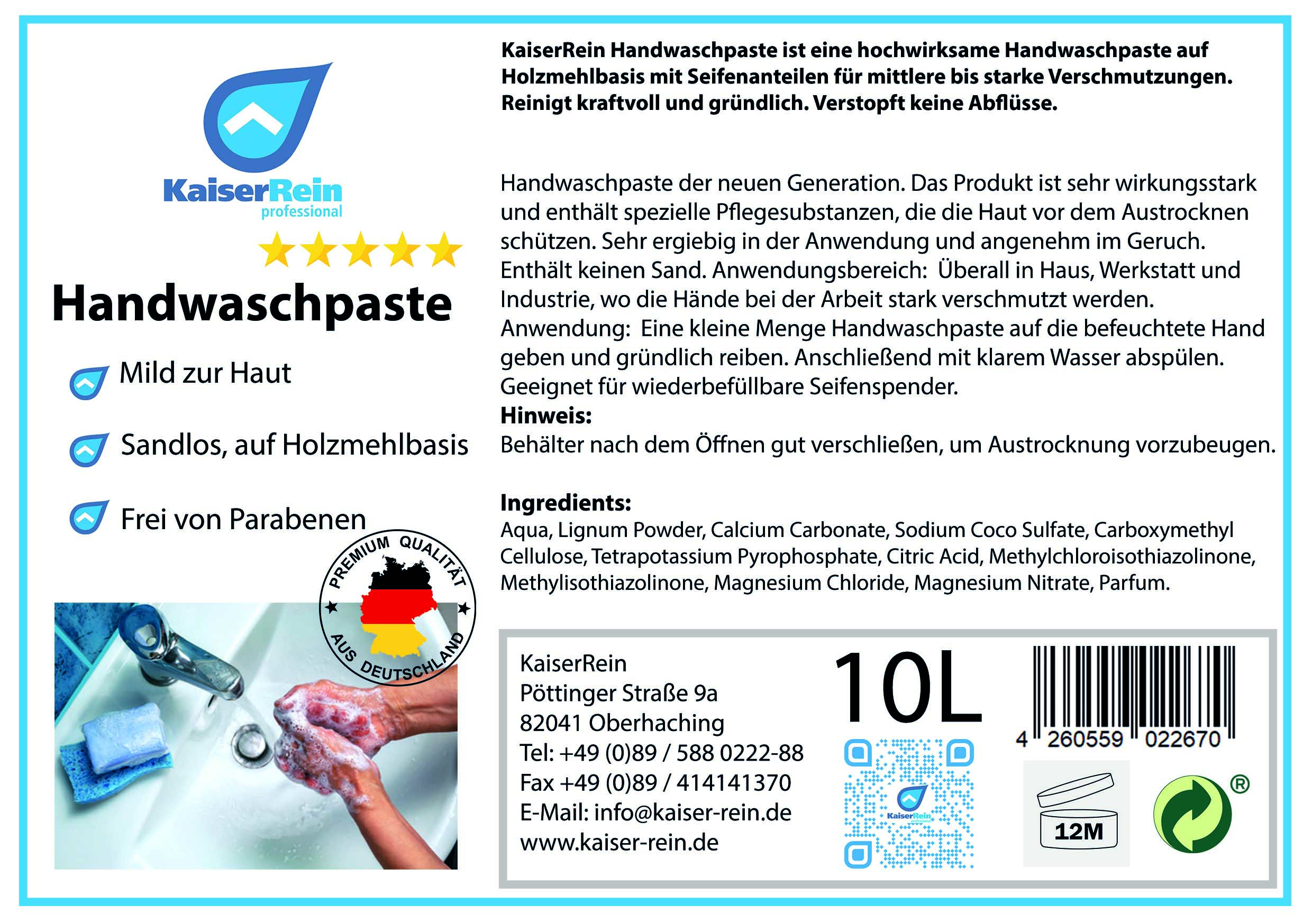 - Handwaschpaste ist ohne Sand auf Holzmehlbasis und ist trotz extrem guter Reinigungsleistung gegen hartnäckigen Schmutz haut-mild