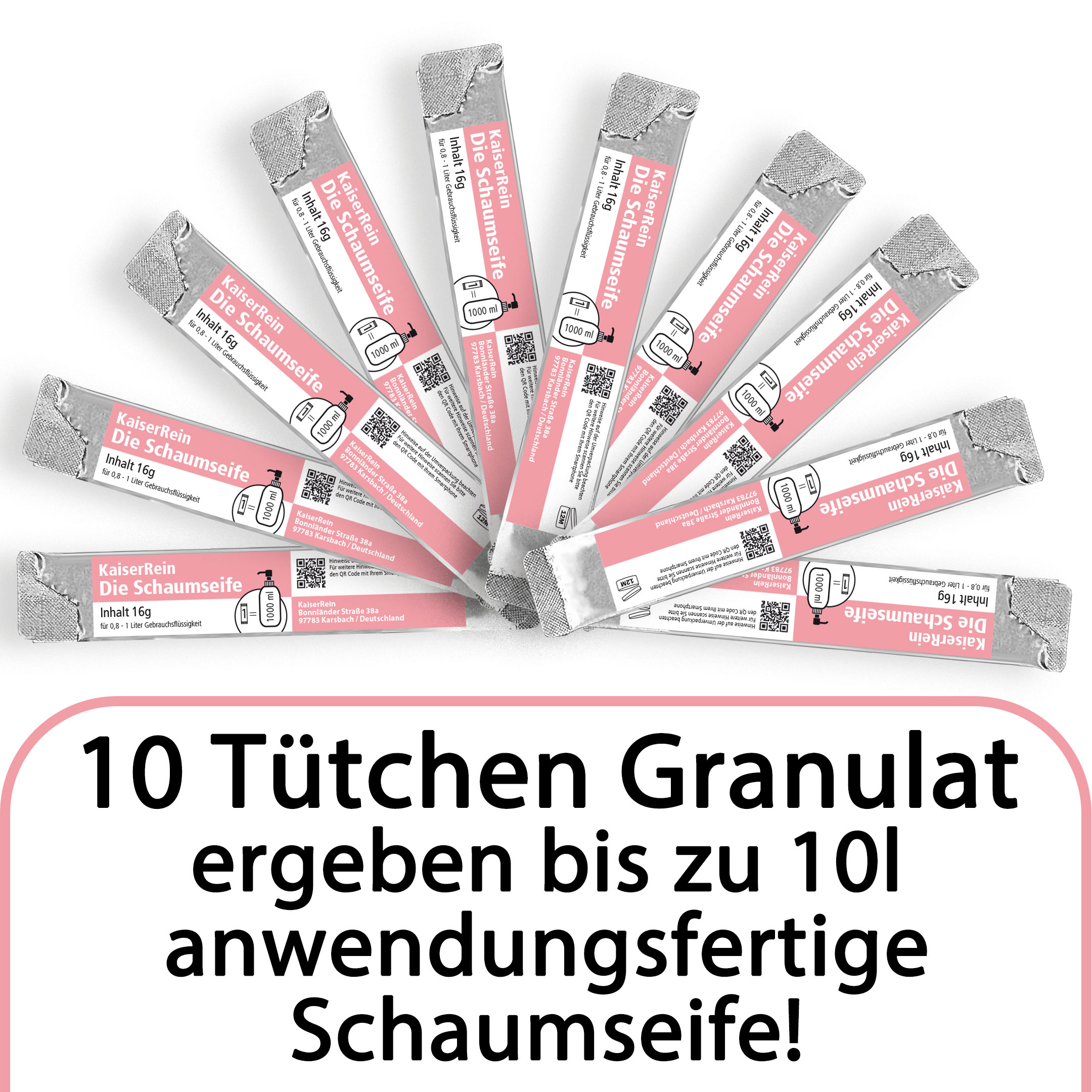Produktinformationen "KaiserRein Schaumseife 10 Granulatbeutel zum Nachfüllen - Nachhaltige Schaumseife Nachfüllpackung - 800-1000 ml - Rosenduft - Silikonfrei"