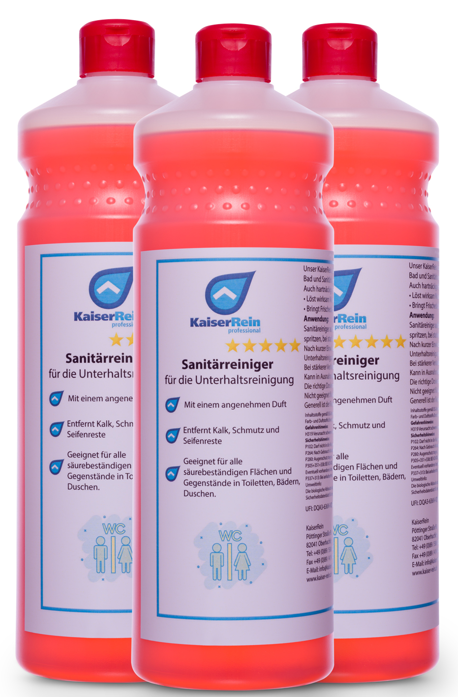 - Unser Sanitär-Reiniger entfernt schonend aber kraftvoll Kalk, Seifenreste und Schmutz im Sanitärbereich und verbreitet einen angenehmen Duft
