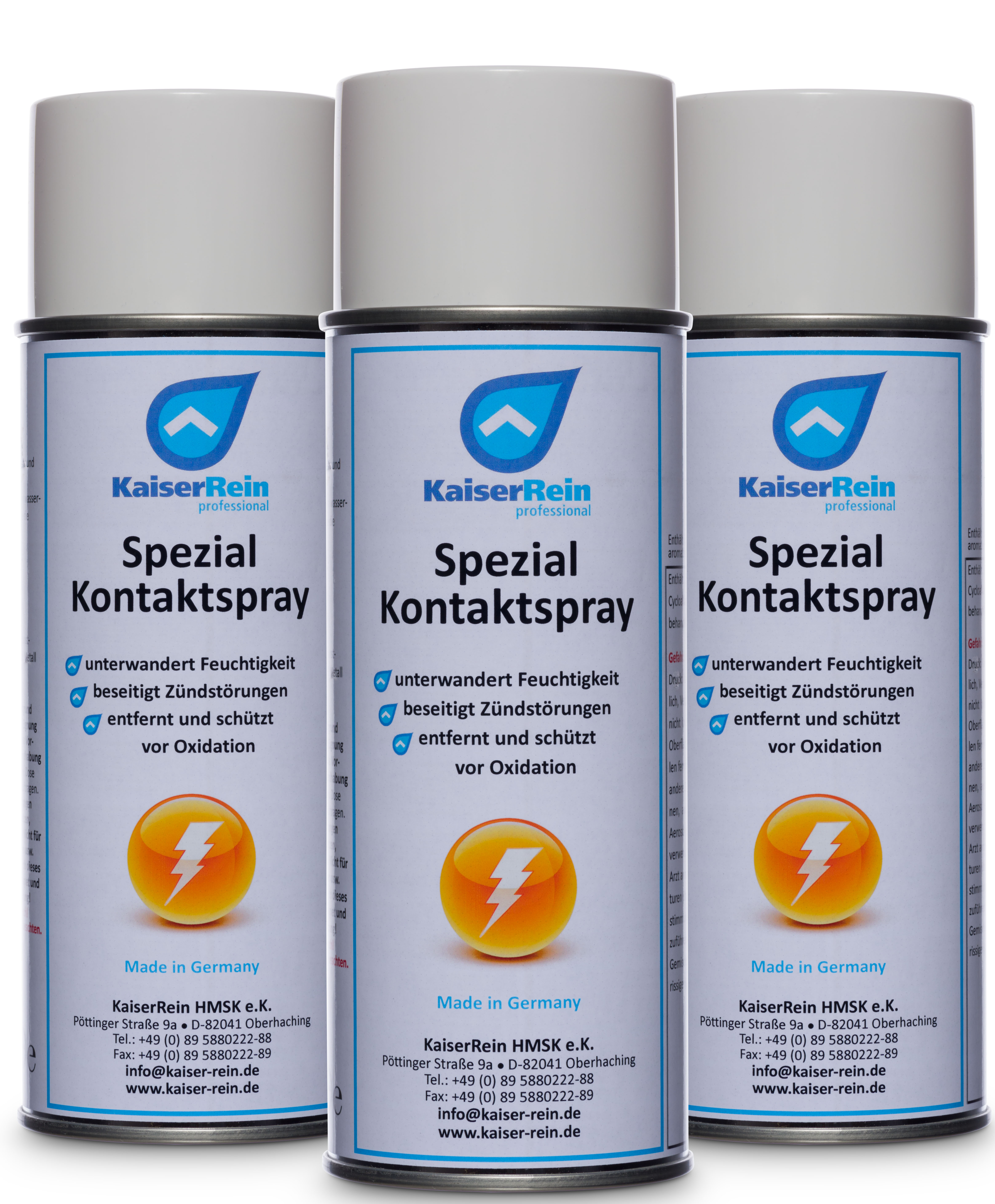 Produkt I KaiserRein Kontaktspray wirkt schnell und bietet Feuchtigkeitsschutz für elektrische Geräte und Anlagen. Unser Spezial Kantakt-spray unterwandert Feuchtigkeit - bildet einen wasserverdrängenden, klaren Schutzfilm, ohne die Leitfähigkeit zu beeinflussen